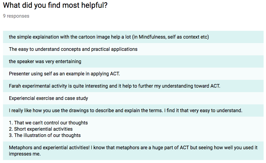 It is called Entree is Served as it is meant to be a taster of ACT, especially for those who are new to ACT and not sure if this is an approach they would want to go further with. It is designed such that even if you do like ACT after attending this workshop, you would be equipped to learn ACT on your own through self-study. Being an ACT therapist does not require certification.